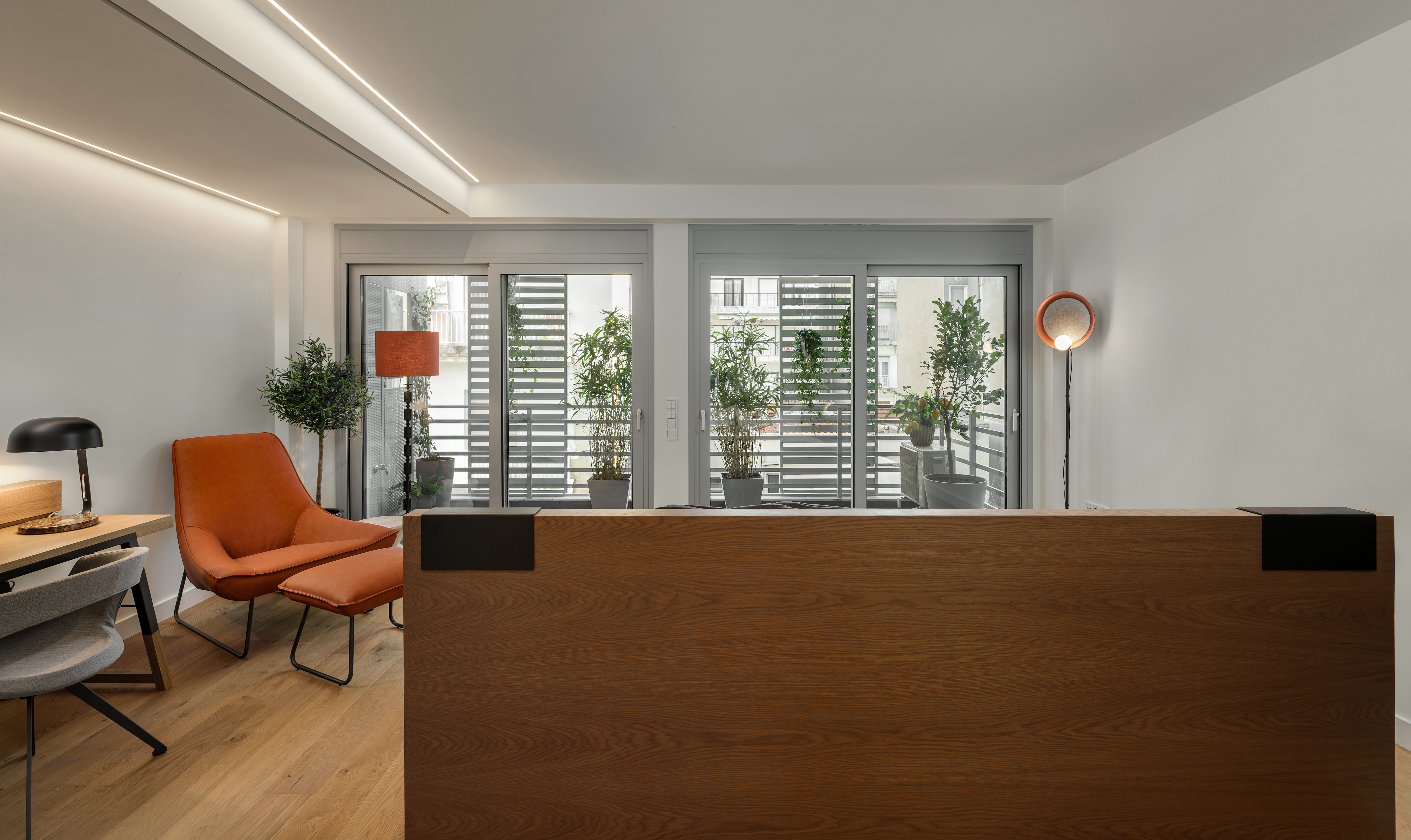 Η μελέτη εστίασε στη δημιουργία μιας αστικής όασης: ενός διαμερίσματος που συνδυάζει λειτουργικότητα, αίσθηση ελευθερίας και υψηλή αισθητική, με καθαρές γραμμές, φυσικά υλικά και στοχευμένες χρωματικές εντάσεις.