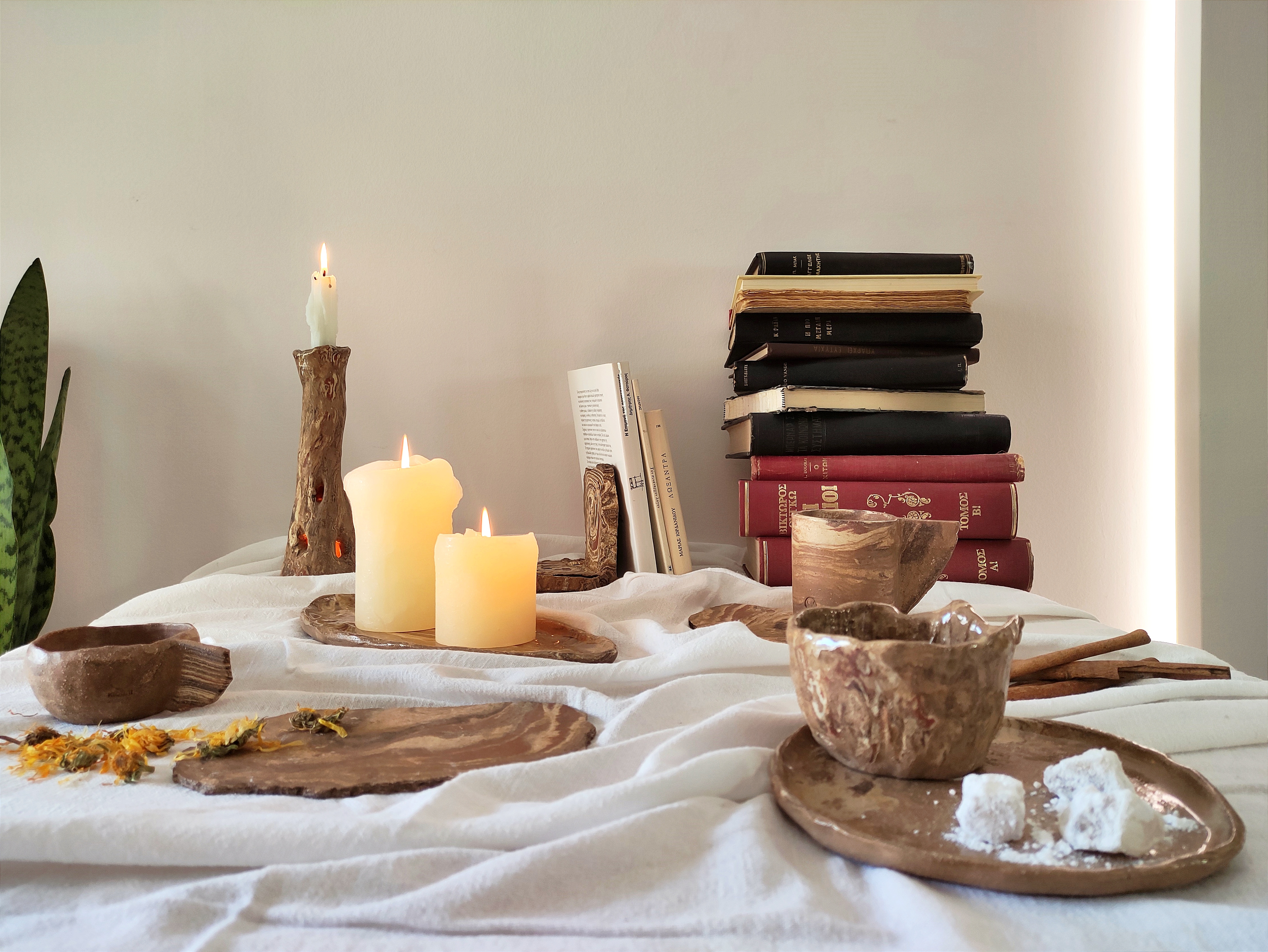 Με τον πηλό ως κύριο μέσο έκφρασης, δημιουργούμε αριθμημένες σειρές από χρηστικά αντικείμενα —κούπες, μπολ, πιάτα και βάζα— που εισάγουν μια έντονη αίσθηση υλικότητας στον σύγχρονο εσωτερικό χώρο.